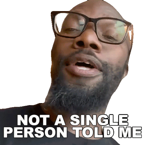 Rich Benoit expresses disbelief with the caption 'NOT A SINGLE PERSON TOLD ME', looking directly at the camera.