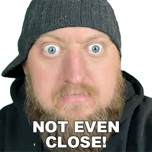 Dj Hunts reacts with wide eyes and an open mouth, exclaiming 'NOT EVEN CLOSE!' in this animated sticker.