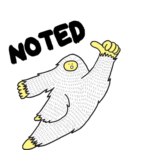 A furry white yeti-like creature gives a thumbs up with the word "NOTED" next to it.