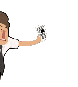 A cartoon man in a shirt and tie reacts with alarm to a piece of news he's holding, expressing surprise or concern.