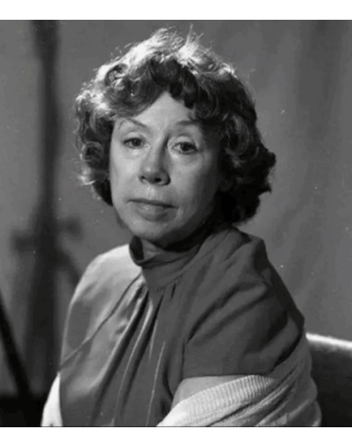 a black and white photo of a woman with curly hair sitting in a chair