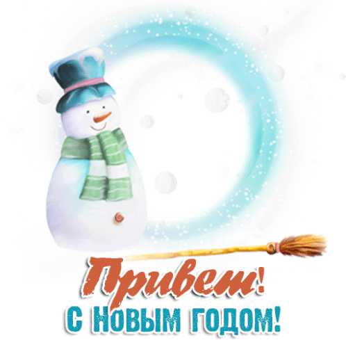 a snowman with a scarf around his neck and a broom sticking out of his mouth is on a russian christmas card