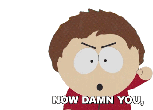 Clyde Donovan from South Park angrily demands, 'NOW DAMN YOU, LET HIM SPEAK!' with a frustrated expression.