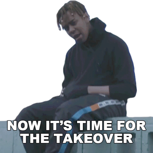 Ybn Cordae, with a confident pose, declares 'NOW IT'S TIME FOR THE TAKEOVER', embodying power and control.