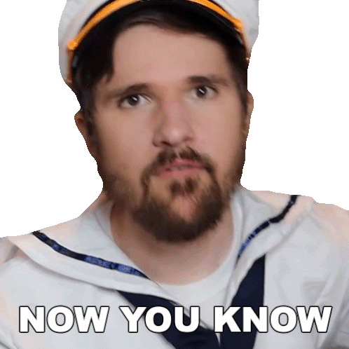 Jimmy, a man in a sailor outfit, makes an expressive face with 'NOW YOU KNOW' text.