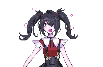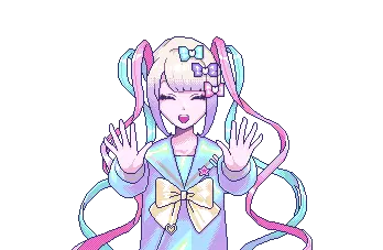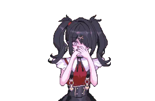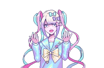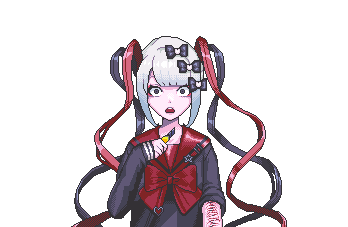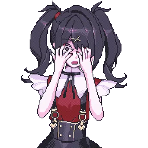 Ame-chan from Needy Streamer Overload (NSO) in pixel art, looking shocked with pigtails and bows.