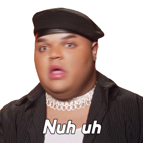Kandy Muse from RuPaul's Drag Race All Stars 8 says "Nuh uh" with a dismissive expression, wearing a beret and choker.