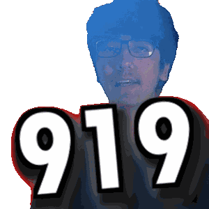 a man with glasses and a mustache has the number 919 on his face