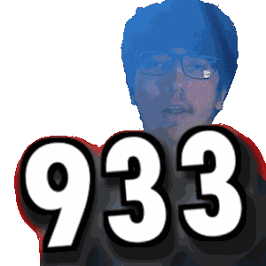 a man with blue hair and glasses has the number 933 in front of him