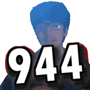 a man wearing glasses holds up the number 9:44