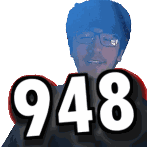 a man wearing glasses is smiling and holding the number 948 in front of his face