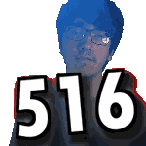 a pixelated image of a man with glasses holding the number 516