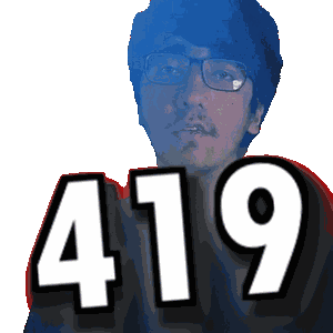 a pixelated image of a man with glasses and the number 419 behind him