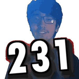 a man with glasses holds up the number 231 in front of his face