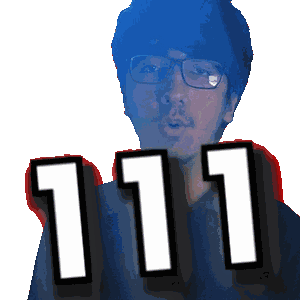 a pixelated image of a man holding up the number 111