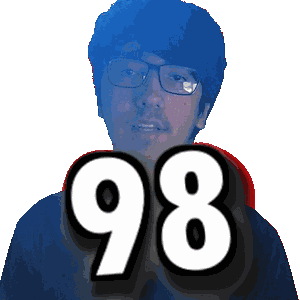 a pixelated image of a man wearing glasses with the number 98 behind him