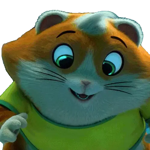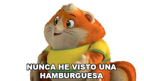 A cute animated cat character, Meatball, expresses surprise, stating he has never seen a hamburger.
