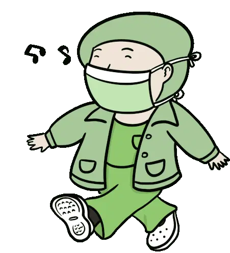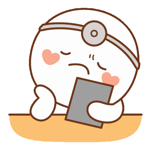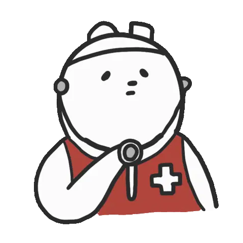 A cute, tired cartoon doctor or nurse character with a medical headband, holding a clipboard thoughtfully.