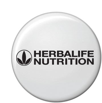 An animated sticker featuring the iconic white button with 'HERBALIFE NUTRITION' text, subtly rotating to catch attention.