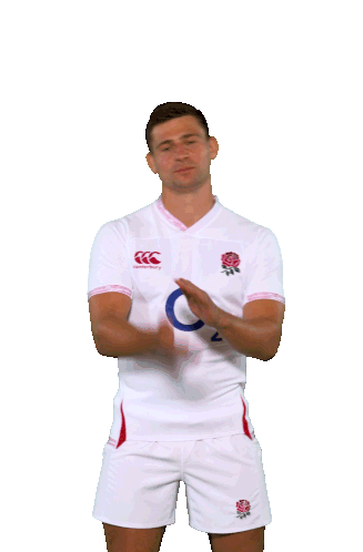 An England Rugby player, wearing an O2Sports jersey, claps enthusiastically as the hashtag '#WearTheRose' appears.