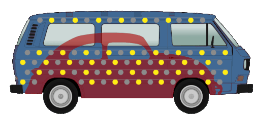 Niklas Wagner's iconic Obersuhl Light Bus, a VW T3 decorated with yellow and gray lights, featuring a red car silhouette.