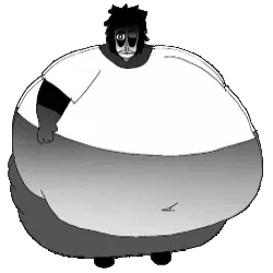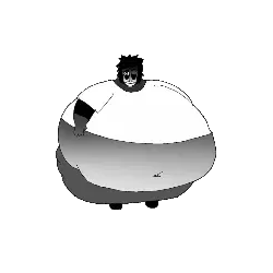 A pixelated animated sticker featuring a blue and brown circle, abstractly representing the concept of an obese boy and obesity.