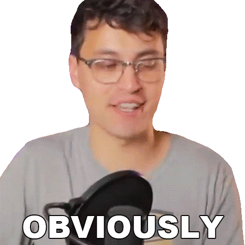 Hunter Engel, wearing glasses and a grey shirt, speaks into a microphone, clearly stating 'Obviously'.