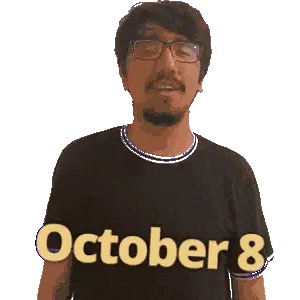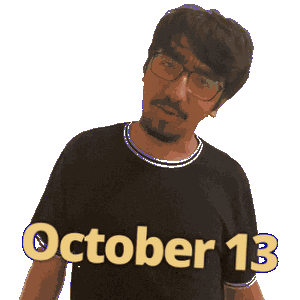 a man wearing glasses and a black shirt with the date october 13