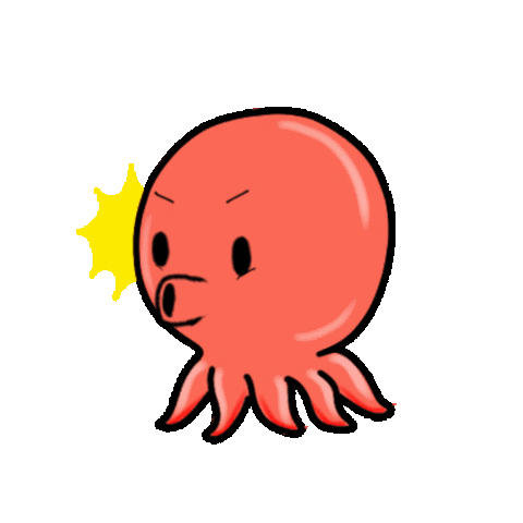 A red cartoon octopus with eight arms and an angry expression, featuring small black eyes and an open mouth.
