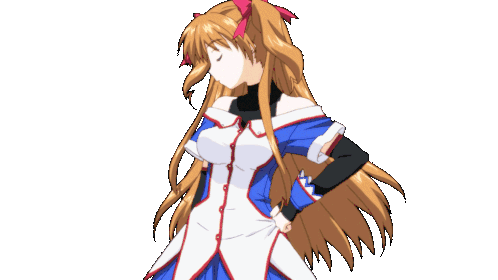 Ogata Rina from White Album 2, with long brown hair and red ribbons, turns her head and holds a microphone.