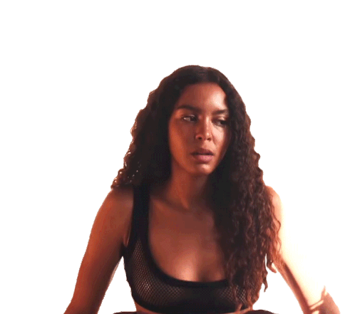Arlissa with long curly hair in a black top, looking thoughtfully to the side with a slight side eye expression.