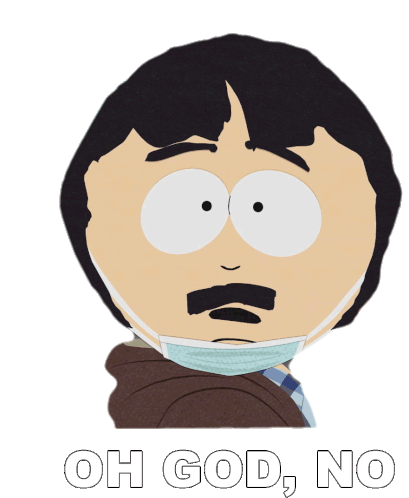 Randy Marsh from South Park, wearing a mask, reacts with a shocked "Oh God, No!" expression.
