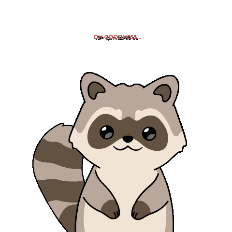 A sad cartoon raccoon reacts to the start of the week with the captions 'OH GOODNESS...' and 'IT'S MONDAY!!'.