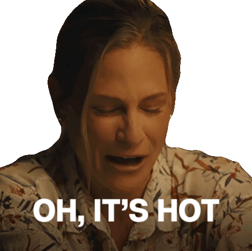 Angela, played by Tara Spencer-Nairn, reacts to the heat, exclaiming 'Oh, It's Hot' in this sticker from You're My Hero.