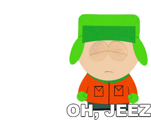 Kyle Broflovski from South Park expresses frustration with gritted teeth and the caption 'OH, JEEZ'.