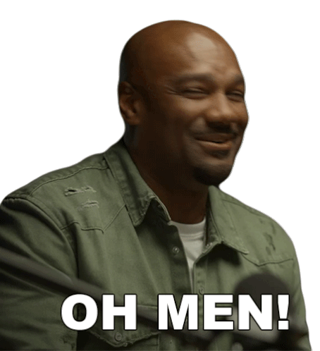Darian Morgan from Kingdom Business smiles and says 'OH MEN!' in this animated sticker.