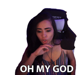 A woman reacts with surprise, exclaiming 'Oh My God' while sitting in a gaming chair. Perfect for expressing shock or disbelief.