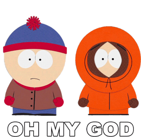 Stan Marsh and Kenny McCormick from South Park react with wide eyes, exclaiming "Oh My God!" in unison.