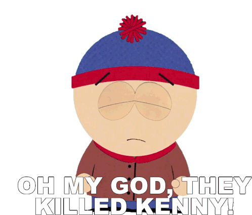Stan Marsh reacts in shock, exclaiming "Oh my God, they killed Kenny!" in this iconic South Park moment.