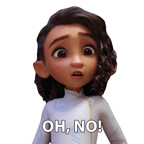 Princess Ellian from Spellbound reacts with a concerned 'Oh, No!' expression in this animated sticker.