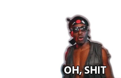 Wes from Corridor Crew reacts with surprise, exclaiming 'Oh, Shit' while wearing sunglasses and a bandana.
