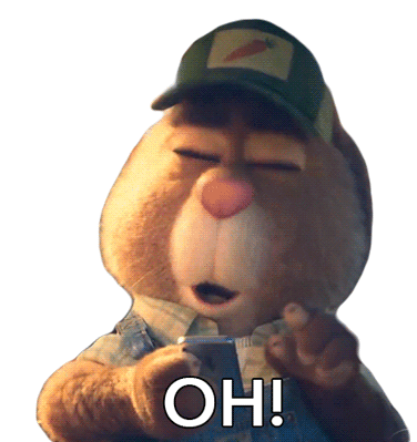 Stu Hopps from Zootopia looks utterly surprised with wide eyes, exclaiming 'OH!' in this expressive sticker.