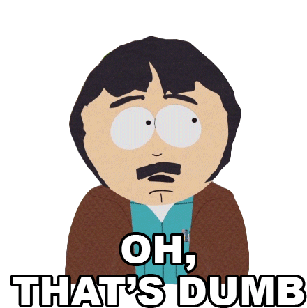 Randy Marsh from South Park reacts with a shocked expression, exclaiming "OH, THAT'S DUMB."