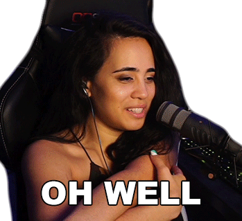 Katcontii shrugs and says 'Oh Well' into a microphone, expressing indifference or resignation.