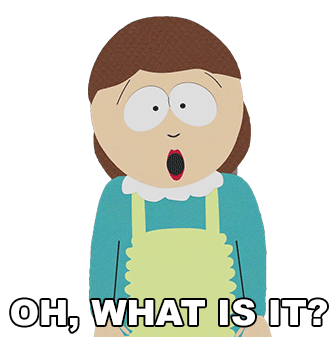 Liane Cartman from South Park asks "Oh, what is it?" with a surprised and curious expression.