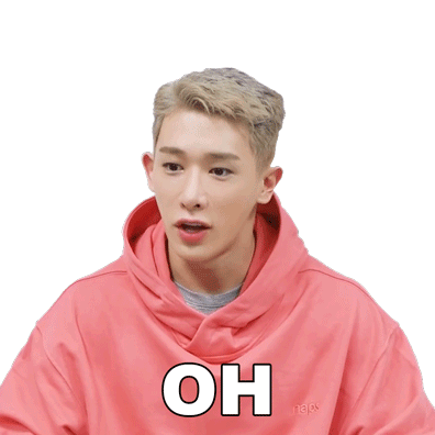 Wonho reacts with a surprised "OH" expression, mouth open in shock, wearing a pink hoodie.