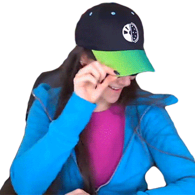 Cristine Raquel Rotenberg playfully adjusts her hat and sunglasses with a confident smile, exuding an 'Oh Yeah' vibe.