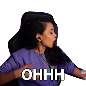 Katharine Conti's surprised reaction, opening her mouth in an 'ohh' expression, then puckering her lips.