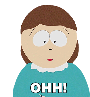 Liane Cartman from South Park reacts with a shocked "OHH!" expression, eyes wide and mouth open, holding a pen.