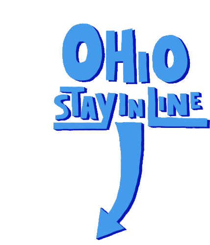 Animated sticker showing the text 'OHIO STAY IN LINE' with a downward pointing arrow, encouraging voters.